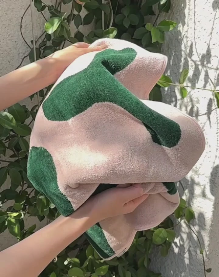 都会や家の中では自然に触れる機会が少ないため、毎日使うバスタオルのデザインに自然と共生しているような表現をしました。しっかりとした生地はふっくらとした厚みがあり、肌触りの良さが抜群です。